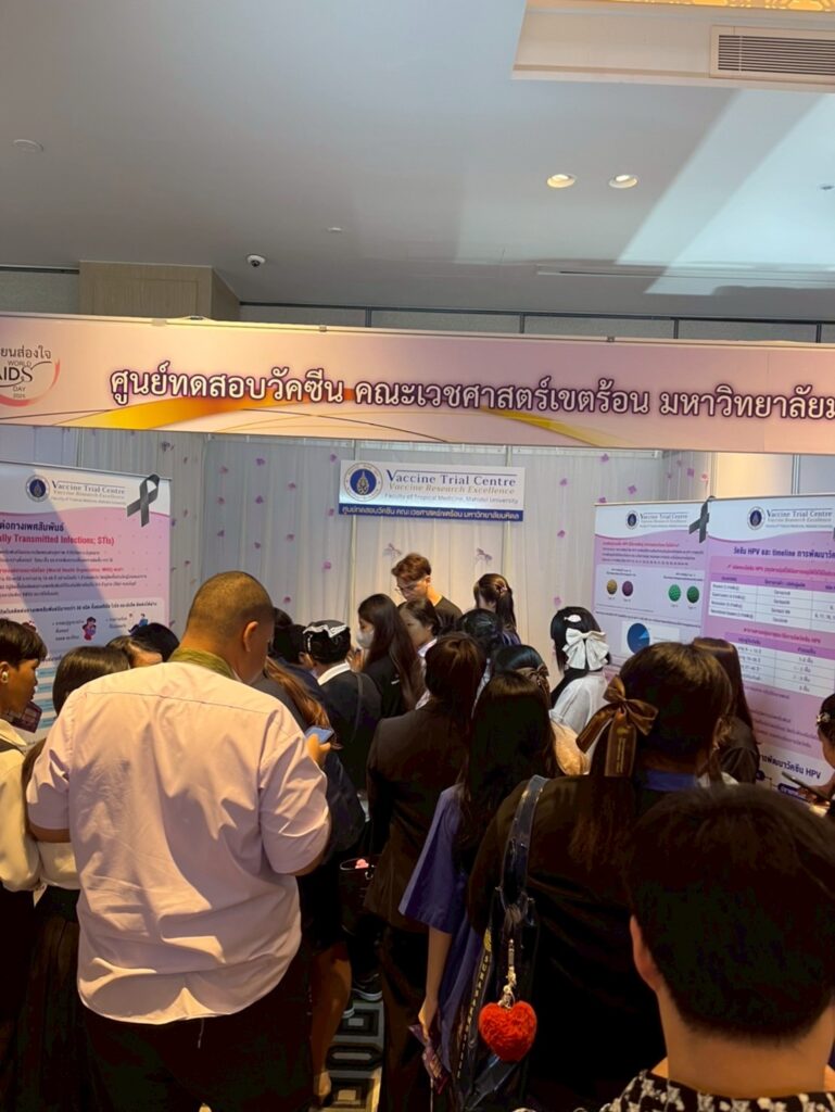 โดยศูนย์ทดสอบวัคซีนได้มีการจัดบูธให้ความรู้เกี่ยวกับโรคติดต่อทางเพศสัมพันธ์ เช่น HIV, HPV(ทำให้เกิดมะเร็งปากมดลูก) การคัดกรองตรวจหาเชื้อHPV รวมทั้งการพัฒนาวัคซีนHPV และวัคซีน HPV ที่ได้รับการอนุมัติในประเทศไทย และมีกิจกรรมตอบคำถามร่วมสนุก เพื่อส่งเสริมให้เยาวชนและประชาชนตระหนักรู้และเข้าใจเกี่ยวกับการป้องกันโรคติดต่อทางเพศสัมพันธ์และโรคเอดส์ที่ถูกต้อง